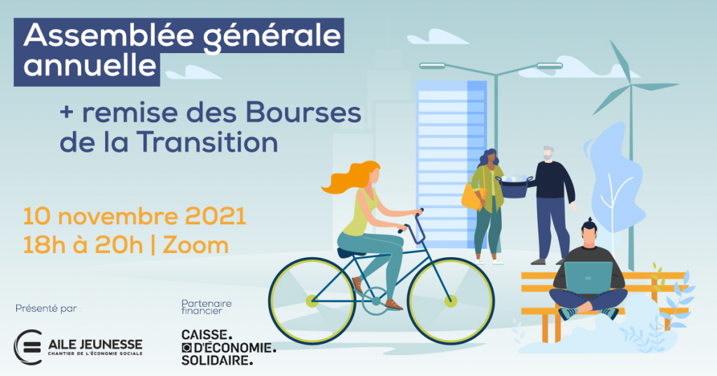 C’est le 10 novembre, de 18h à 20h, qu’aura lieu la 5e assemblée générale annuelle de l’Aile jeunesse du Chantier de l’économie sociale ! L’Aile jeunesse tiendra cette AGA de manière virtuelle encore une fois cette année.